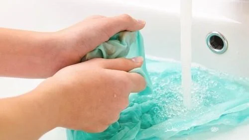 Best method: Hand wash in warm water & mild detergent. I used regular detergent like Arm & Hammer Sensitive Skin, you can use any kind of soap as long as it doesn't have oils in it. A little color run-off is normal. Be careful not to let your silk soak for too long.